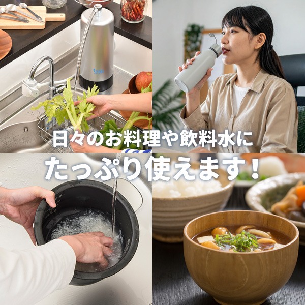 物質名 総ろ過水量 遊離残留塩素 8000L 浄水能力 濁り 8000L CAT(農薬) 8000L 2MIB 8000L ※JIS S3201試験結果に基づく、除去率80%以上の総ろ過水量
